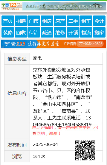 京东外卖部分地区对外承包板块:生活服务板块培训或者其它都行。现对外开放伊春市各市、县、区的合作权限,“铁力市”、“南岔市”、“金山屯和西林区”、“友好区”、“嘉荫县”。联系人:王先生联系电话:13044686789王18404588819 【电话咨询时,请一定说明在伊春信息网看到的,谢谢!】 |