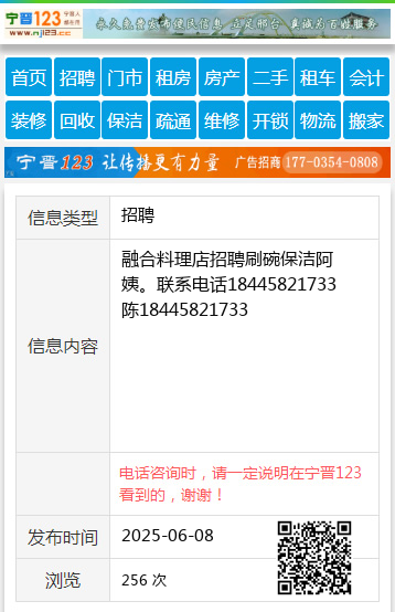 融合料理店招聘刷碗保洁阿姨。联系电话18445821733陈18445821733