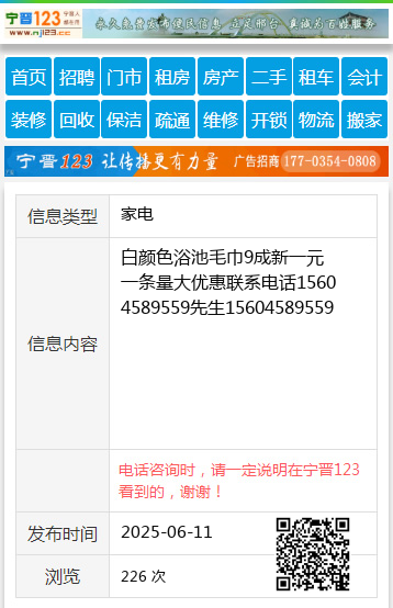 白颜色浴池毛巾9成新一元一条量大优惠联系电话15604589559先生15604589559 【电话咨询时,请一定说明在伊春信息网看到的,谢谢!】 |