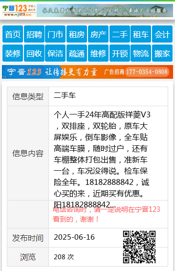个人一手24年高配版祥菱V3,双排座,双轮胎,原车大屏娱乐,倒车影像,全车贴高端车膜,随时过户,还有车棚整体打包出售,准新车一台,车况没得说。检车保险全年。18182888842,诚心买的来,近期买有优惠。阳18182888842 【电话咨询时,请一定说明在伊春信息网看到的,谢谢!】 |
