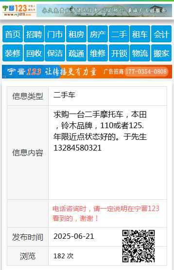 求购一台二手摩托车,本田,铃木品牌,110或者125.年限近点状态好的。于先生13284580321