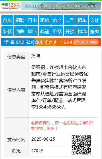 伊春招,连锁超市合伙人有超市/零售行业运营经验者优先具备实体经营场所对互联网,新零售模式有强烈探索意愿从选址到营销全面陪跑库存/订单/配送一站式管理李13845888587 【电话咨询时,请一定说明在伊春信息网看到的,谢谢!】 |