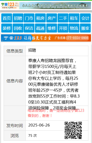 泰康人寿招聘龙园推荐官,带薪学习1500元/月每天上班2个小时员工制待遇如果你有大专以上学历,每月2500元泰康储备优秀人才研修班年龄25岁一45岁,优秀者放宽到55岁工作时间:早8.30至10.30正式员工福利有4项保险保障,2项奖金保障外加社保补贴全面保障收入无上限!王经理18345883229 【电话咨询时,请一定说明在伊春信息网看到的,谢谢!】 |