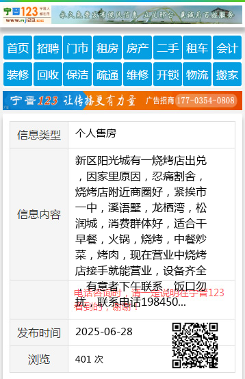 新区阳光城有一烧烤店出兑,因家里原因,忍痛割舍,烧烤店附近商圈好,紧挨市一中,溪语墅,龙栖湾,松润城,消费群体好,适合干早餐,火锅,烧烤,中餐炒菜,烤肉,现在营业中烧烤店接手就能营业,设备齐全,有意者下午联系,饭口勿扰,联系电话19845009099陈19845009099 【电话咨询时,请一定说明在伊春信息网看到的,谢谢!】 |