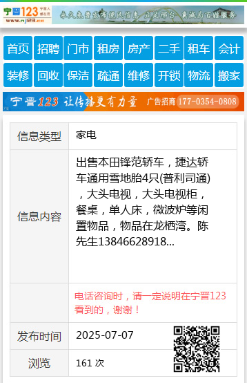 出售本田锋范轿车,捷达轿车通用雪地胎4只(普利司通),大头电视,大头电视柜,餐桌,单人床,微波炉等闲置物品,物品在龙栖湾。陈先生13846628918 【电话咨询时,请一定说明在伊春信息网看到的,谢谢!】 |