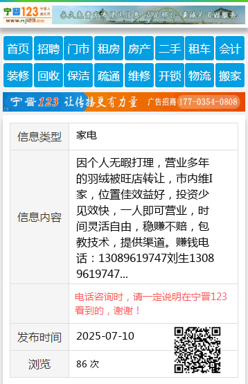 因个人无暇打理,营业多年的羽绒被旺店转让,市内维I家,位置佳效益好,投资少见效快,一人即可营业,时间灵活自由,稳赚不赔,包教技术,提供渠道。赚钱电话:13089619747刘生13089619747