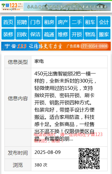 450元出售智能锁2把一模一样的,全新未拆封的300元,轻微使用过的150元,支持指纹开锁、密码开锁、刷卡开锁、钥匙开锁四种方式。包装完好,带提手设计方便搬运。适合家用防盗,科技感十足。全新商品,一经售出不退不换!仅限伊美区自提。有需要的朋友可以联系我,非诚勿扰哦~先生13045259667 【电话咨询时,请一定说明在伊春信息网看到的,谢谢!】 |