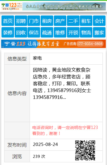 因陪读,黄金地段文教食杂店急兑,多年经营老店,顾客稳定,打印,复印。联系电话,13945879916刘女士13945879916 【电话咨询时,请一定说明在伊春信息网看到的,谢谢!】 |
