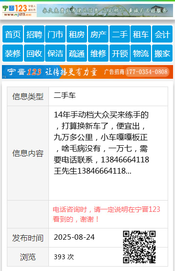 14年手动档大众买来练手的,打算换新车了,便宜出,九万多公里,小车嘎嘎板正,啥毛病没有,一万七,需要电话联系,13846664118王先生13846664118