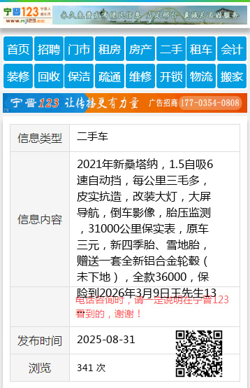 2021年新桑塔纳,1.5自吸6速自动挡,每公里三毛多,皮实抗造,改装大灯,大屏导航,倒车影像,胎压监测,31000公里保实表,原车三元,新四季胎、雪地胎,赠送一套全新铝合金轮毂(未下地),全款36000,保险到2026年3月9日王先生13845826647 【电话咨询时,请一定说明在伊春信息网看到的,谢谢!】 |