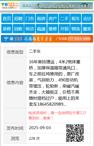 16年奥铃捷运,4米2宽体重桥,加厚保温箱带通风口,车之前拉鸡雏用的,原厂改装,气刹助力,490发动机带增压,轮胎新,柴暖汽暖齐全,大箱板正,价格不高随时提档过户,能用上的来卖车18645820989 【电话咨询时,请一定说明在伊春信息网看到的,谢谢!】 |