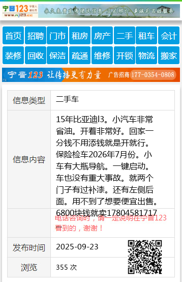 15年比亚迪l3。小汽车非常省油。开着非常好。回家一分钱不用添钱就是开就行。保险检车2026年7月份。小车有大瓶导航。一键启动。车也没有重大事故。就两个门子有过补漆。还有左侧后面。用不到了想要便宜出售。6800块钱就卖17804581717卖车17804581717 【电话咨询时,请一定说明在伊春信息网看到的,谢谢!】 |