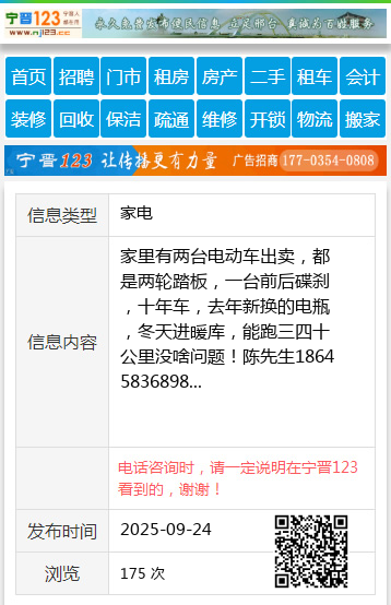 家里有两台电动车出卖,都是两轮踏板,一台前后碟刹,十年车,去年新换的电瓶,冬天进暖库,能跑三四十公里没啥问题!陈先生18645836898