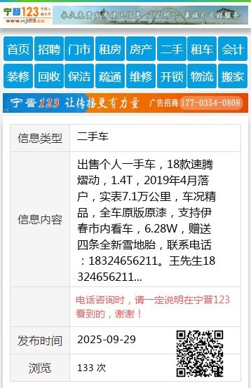 出售个人一手车,18款速腾熠动,1.4T,2019年4月落户,实表7.1万公里,车况精品,全车原版原漆,支持伊春市内看车,6.28W,赠送四条全新雪地胎,联系电话:18324656211。王先生18324656211 【电话咨询时,请一定说明在伊春信息网看到的,谢谢!】 |