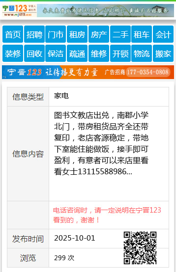 图书文教店出兑,南郡小学北门,带房租货品齐全还带复印,老店客源稳定,带地下室能住能做饭,接手即可盈利,有意者可以来店里看看女士13115588986 【电话咨询时,请一定说明在伊春信息网看到的,谢谢!】 |