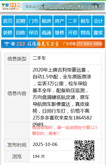 2020年上牌吉利帝豪远景,自动1.5中配,全车原版原漆,实表3万公里,检车保险基本全年,配备胎压监测,方向盘满键巡航定速,原车导航倒车影像雷达,真皮座椅,日间行车灯,价格不高2万多多喜欢来卖车18645820989 【电话咨询时,请一定说明在伊春信息网看到的,谢谢!】 |