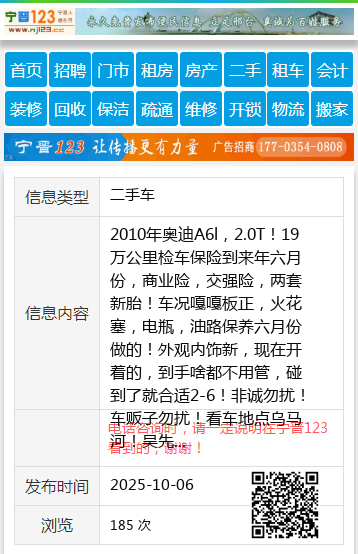 2010年奥迪A6l,2.0T!19万公里检车保险到来年六月份,商业险,交强险,两套新胎!车况嘎嘎板正,火花塞,电瓶,油路保养六月份做的!外观内饰新,现在开着的,到手啥都不用管,碰到了就合适2-6!非诚勿扰!车贩子勿扰!看车地点乌马河!吴先生16645833339 【电话咨询时,请一定说明在伊春信息网看到的,谢谢!】 |