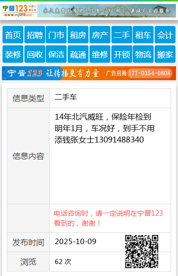 14年北汽威旺,保险年检到明年1月,车况好,到手不用添钱张女士13091488340