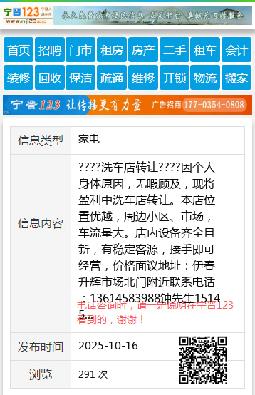 ????洗车店转让????因个人身体原因,无暇顾及,现将盈利中洗车店转让。本店位置优越,周边小区、市场,车流量大。店内设备齐全且新,有稳定客源,接手即可经营,价格面议地址:伊春升辉市场北门附近联系电话:13614583988钟先生15145825769 【电话咨询时,请一定说明在伊春信息网看到的,谢谢!】 |