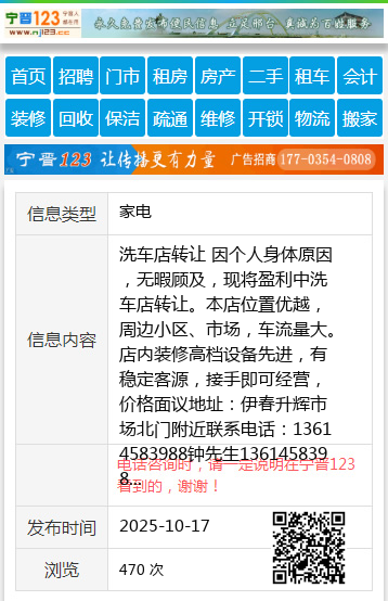 洗车店转让 因个人身体原因,无暇顾及,现将盈利中洗车店转让。本店位置优越,周边小区、市场,车流量大。店内装修高档设备先进,有稳定客源,接手即可经营,价格面议地址:伊春升辉市场北门附近联系电话:13614583988钟先生13614583988 【电话咨询时,请一定说明在伊春信息网看到的,谢谢!】 |