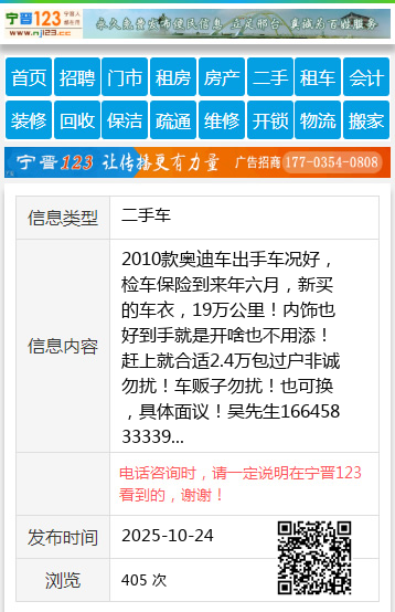 2010款奥迪车出手车况好,检车保险到来年六月,新买的车衣,19万公里!内饰也好到手就是开啥也不用添!赶上就合适2.4万包过户非诚勿扰!车贩子勿扰!也可换,具体面议!吴先生16645833339 【电话咨询时,请一定说明在伊春信息网看到的,谢谢!】 |