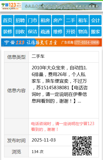 免责声明:本栏目信息由网友自行发布,伊春信息网不承担任何责任!提高警惕,谨防诈骗!做推广、做信息置顶!请加伊春信息网客服微信:wangku0455