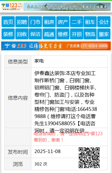 伊春鑫达装饰:本店专业加工制作断桥门窗,白钢门窗、铝朔铝门窗、白钢楼梯扶手、卷帘门、防盗门,以及各种型材门窗加工与安装,专业精修各种门窗!电话:16645389888(维修请打这个电话曹先生13904588055 【电话咨询时,请一定说明在伊春信息网看到的,谢谢!】 |