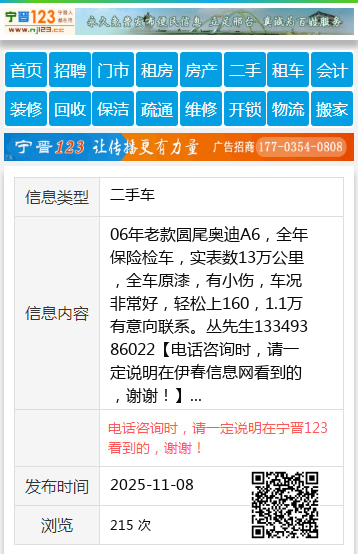 06年老款圆尾奥迪A6,全年保险检车,实表数13万公里,全车原漆,有小伤,车况非常好,轻松上160,1.1万有意向联系。丛先生13349386022 【电话咨询时,请一定说明在伊春信息网看到的,谢谢!】 |