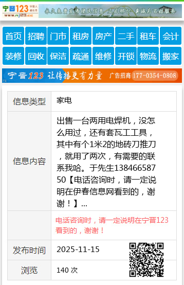 出售一台两用电焊机,没怎么用过,还有套瓦工工具,其中有个1米2的地砖刀推刀,就用了两次,有需要的联系我哈。于先生13846658750 【电话咨询时,请一定说明在伊春信息网看到的,谢谢!】 |