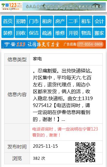 。忍痛割爱。出兑快递驿站。片区集中,平均每天六.七百左右,退货代理点,周边小区都来发货,俩人的活,收入稳定.快递柜。曲女土13199275412 【电话咨询时,请一定说明在伊春信息网看到的,谢谢!】 |