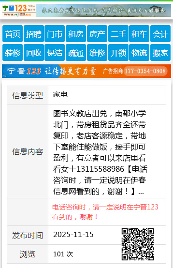 图书文教店出兑,南郡小学北门,带房租货品齐全还带复印,老店客源稳定,带地下室能住能做饭,接手即可盈利,有意者可以来店里看看女士13115588986 【电话咨询时,请一定说明在伊春信息网看到的,谢谢!】 |