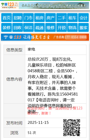 总投次20万,现8万出兑。儿童娱乐项目,松韵城新区0458街区二楼,会员500+,月收入稳定,现无人看摊,有家在附近,并无事的人接事。无技术含量,就需要个看摊就行。陈先生15604581017 【电话咨询时,请一定说明在伊春信息网看到的,谢谢!】 |