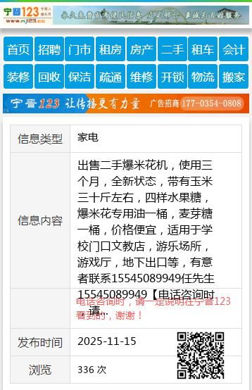 出售二手爆米花机,使用三个月,全新状态,带有玉米三十斤左右,四样水果糖,爆米花专用油一桶,麦芽糖一桶,价格便宜,适用于学校门口文教店,游乐场所,游戏厅,地下出口等,有意者联系15545089949任先生15545089949 【电话咨询时,请一定说明在伊春信息网看到的,谢谢!】 |