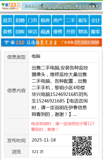 出售二手电脑,安装各种监控摄像头,维修监控大量出售二手电脑、各种配置,出售二手手机,黎明小区4号楼华兴电脑15246921685刘先生15246921685 【电话咨询时,请一定说明在伊春信息网看到的,谢谢!】 |