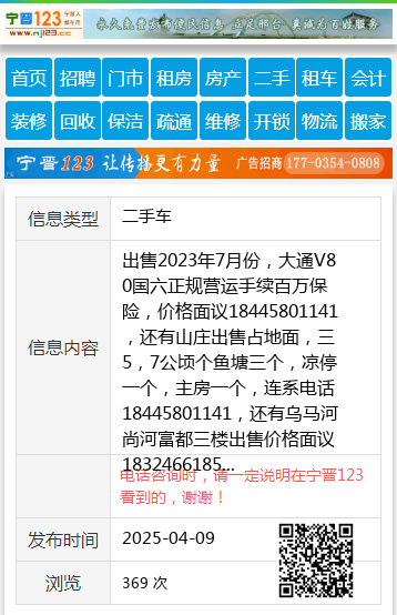 出售2023年7月份,大通V80国六正规营运手续百万保险,价格面议18445801141,还有山庄出售占地面,三5,7公顷个鱼塘三个,凉停一个,主房一个,连系电话18445801141,还有乌马河尚河富都三楼出售价格面议18324661858白先生18445801141 【电话咨询时,请一定说明在伊春信息网看到的,谢谢!】 |