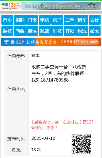 求购二手空调一台,八成新左右,2匹,有的伙伴联系我刘18714780588