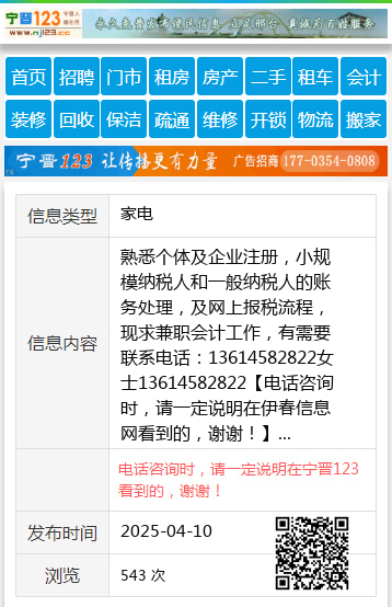 熟悉个体及企业注册,小规模纳税人和一般纳税人的账务处理,及网上报税流程,现求兼职会计工作,有需要联系电话:13614582822女士13614582822 【电话咨询时,请一定说明在伊春信息网看到的,谢谢!】 |