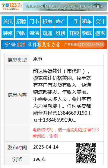 韵达快运转让(市代理),搬家转让价格美丽。接手就有客户有发货有收入,快递物流都能发。年收入美丽。不需要太多人员,会打字有点力量就能干。任何买卖都能合并经营13846699190王女士13846699190 【电话咨询时,请一定说明在伊春信息网看到的,谢谢!】 |