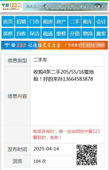 收购4条二手205/55/16雪地胎!好的来孙13664583878