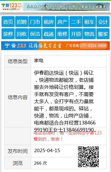伊春韵达快运(快运)转让,快递物流都能发,老店铺搬去外地转让价格划算。接手就有发货有客户,不需要太多人,会打字有点力量就能干,都是现成的。驿站,快递,物流,山特产店铺,电商都适合合并经营13846699190王女士13846699190 【电话咨询时,请一定说明在伊春信息网看到的,谢谢!】 |