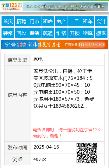 家具低价出,自提,位于伊美区玻璃实木门76×184:50元电脑桌90×70×45:10元电脑桌100×70×50:10元多用柜180×57×73:免费送吴女士18945896262 【电话咨询时,请一定说明在伊春信息网看到的,谢谢!】 |