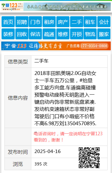 2018丰田凯美瑞2.0G自动女士一手车五万公里,#抬显多工能方向盘.车道偏离碰撞预警电动座椅无钥匙进入一键启动内饰非常新底盘紧凑.发动机变速箱状态非常好副驾驶后门口有小瑕疵不价格不高6.98万刘13504570895