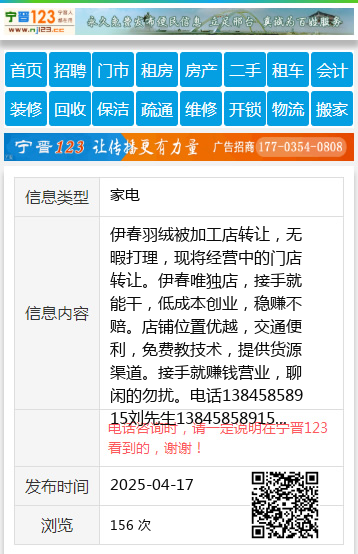 伊春羽绒被加工店转让,无暇打理,现将经营中的门店转让。伊春唯独店,接手就能干,低成本创业,稳赚不赔。店铺位置优越,交通便利,免费教技术,提供货源渠道。接手就赚钱营业,聊闲的勿扰。电话13845858915刘先生13845858915 【电话咨询时,请一定说明在伊春信息网看到的,谢谢!】 |
