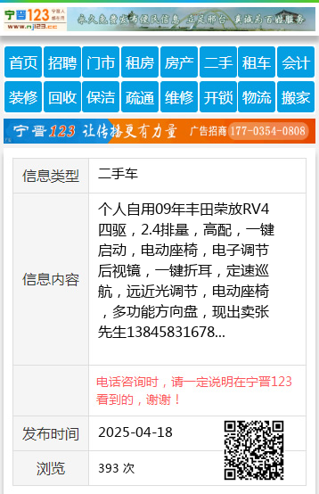 个人自用09年丰田荣放RV4四驱,2.4排量,高配,一键启动,电动座椅,电子调节后视镜,一键折耳,定速巡航,远近光调节,电动座椅,多功能方向盘,现出卖张先生13845831678 【电话咨询时,请一定说明在伊春信息网看到的,谢谢!】 |