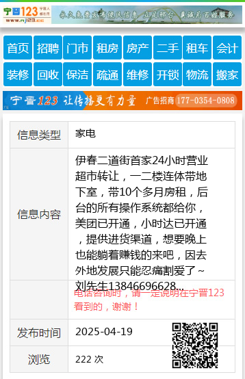 伊春二道街首家24小时营业超市转让,一二楼连体带地下室,带10个多月房租,后台的所有操作系统都给你,美团已开通,小时达已开通,提供进货渠道,想要晚上也能躺着赚钱的来吧,因去外地发展只能忍痛割爱了~刘先生13846696628 【电话咨询时,请一定说明在伊春信息网看到的,谢谢!】 |