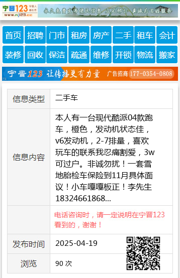 本人有一台现代酷派04款跑车,橙色,发动机状态佳,v6发动机,2-7排量,喜欢玩车的联系我忍痛割爱,3w可过户。非诚勿扰!一套雪地胎检车保险到11月具体面议!小车嘎嘎板正!李先生18324661868 【电话咨询时,请一定说明在伊春信息网看到的,谢谢!】 |