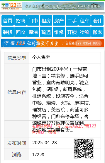 门市出租200平米(一楼带地下室)精装修,接手即可营业,室内宽敞明亮,独立包间,6张桌,新风系统,排烟系统,设施齐全,适合中餐、烧烤、火锅、麻将馆、理发店,美容院,商铺可多种经营,门前有停车场,客源稳定????地理位置优越。松韵城二期美食街☎️180−0458−5688蒙古宴正常营业中……李女士18004585688 【电话咨询时,请一定说明在伊春信息网看到的,谢谢!】 |
