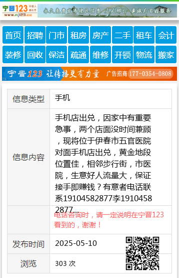 手机店出兑,因家中有重要急事,两个店面没时间兼顾,现将位于伊春市五官医院对面手机店出兑,黄金地段位置佳,相邻步行街,市医院,生意好人流量大,保证接手即赚钱?有意者电话联系19104582877李19104582877 【电话咨询时,请一定说明在伊春信息网看到的,谢谢!】 |