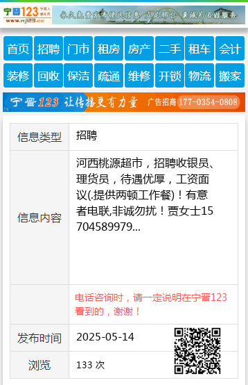 河西桃源超市,招聘收银员、理货员,待遇优厚,工资面议(.提供两顿工作餐)!有意者电联,非诚勿扰!贾女士15704589979 【电话咨询时,请一定说明在伊春信息网看到的,谢谢!】 |