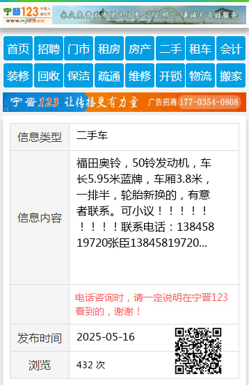 福田奥铃,50铃发动机,车长5.95米蓝牌,车厢3.8米,一排半,轮胎新换的,有意者联系。可小议!!!!!!!!!联系电话:13845819720张臣13845819720 【电话咨询时,请一定说明在伊春信息网看到的,谢谢!】 |